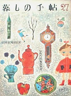 | かわいい表紙の『暮しの手帖』第二世紀・27号。「松之山の地滑り」(幸田文)、「私の浅草」(沢村貞子)、「スーパーは安いか」(スーパで買うのは、パック品で買うのは本当に安いか、という問題提起・グラフが可愛い!!)、「ポルトガルよタイルの町よ」(ポルトガルの町とそこにあるタイルを紹介)、「暮らしの手帖がえらんだエレガンスのなかのしゃれた服」(ファッションページ)、「壁紙をフスマに貼る」(フスマに西洋風の壁紙を貼るススメ。『暮しの手帖』お得意記事)、「チョコレートケーキ」(作り方)など。206p。表紙;花森安冶、装画;花森安冶。 | |||