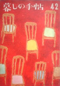| 暮しの手帖第一期42号。真っ赤な背景に花森さんっぽい椅子が並んでいるかわいい表紙です。「主婦が考えた台所」、「赤ちゃんの生活費」(生まれてから満1才までにいくらかかったか)、「愉快な手袋」(作り方)、「糸まきで作るお人形」(かわいらしいです)、「流行のそとにある美しさ」(グッド・ハウスキーピング誌デザインの洋服を日本人に合わせてホンヤクした企画)、「りんごのジャム」(作り方)、「サンタクロースの来ないクリスマス」(ちいさい人用のお話。カラーページでかわいいです)などなど。表紙・花森安治、挿画・花森安治。 | ||