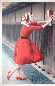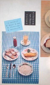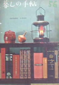 本棚の上にランプとたまねぎ!が置かれた表紙の暮しの手帖第一期56号。落ち着いた緑と赤は花森さんならでは。 この号のおすすめは「日曜日の朝の食事」。「ねぼうして朝とひるを一しょにするときに」食べるホットケーキとサラダ、紅茶などが並ぶ朝食の写真などが、とてもいい雰囲気。 その他「中国風茶わんむし」、「風変わりでおいしい豆腐料理」、「風邪のひどい日に」(チュールのすすめ)、「ベビーカーをテストする」、「よく食べよく歌え」(石井好子さんのお料理随筆)、「かしこいはた織り」(藤城清治の影絵話)など。表紙・花森安治、挿画・花森安治。 | ||