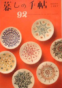| 暮しの手帖第一期92号。花森さんがイラストを書いたお皿が表紙に使われていて、とってもかわいらしい!記事も「夫と妻」(全国4200名の生活時間調査・花森さんの挿画が素敵)、「東京の屋根の上で」(設計図)、「ショッピングバッグは手作りで」(作り方。可愛い!)、「すらりとなりたし とことんたべたし」(石井好子さんのお料理随筆)、「レモンでも切り方で」(色々なレモンの切り方。かわいらしい)、「フィヨルト」(北欧のフィヨルト紀行)など。表紙・花森安冶、挿画・花森安冶。 | ||