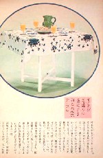 | 暮しの手帖第二期。カラーページも多く、花森さんの色彩感覚が存分に生かされています。「怪談みかん水交響曲」(ジュースの中に入っている着色料について。でも、みかん水って・・・)、「おしゃれ入門」(ファッションページ)、「ある朝の食卓」(夏の朝の食事を提案。食べやすそうでおいしそうなお料理の数々)、「高さが三通りに変化する折たたみ式テーブル」(作り方)、「お菓子これとあれ」(シナモンクッキー、フローティングアイランドの作り方)、エプロンメモ、すてきなあなたに、など。表紙;花森安治、装画;花森安治。 | |||