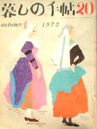 | 雑誌『暮しの手帖』第二世紀20号。本号の題字は、べた塗りではなくて、クレヨンか色鉛筆で少し塗り残しが残るように描かれた手書き感たっぷりのもの。内容は、「演出される<男>たち」(男性化粧品について)花森安冶、「水くさいおはなし」(浄水器商品テスト)、「おいしい味噌汁をのみたい」(作り方)、「本棚を積み上げた本棚」(作り方)、「フィンランドのひと」(ファッションページ)などなど。表紙;花森安治、装画;花森安治。 | |||