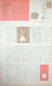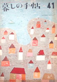 | 暮しの手帖第一期41号。ちっこい家がたくさん描かれている表紙です。「新しい台所」(キッチン研究)、「坊やのボーシ」(チビッ子用のぼうし。かわいい!)、「思い出の街−岡崎」(尾崎士郎)、「紐のむすび方」、「野菜ぎらいの人のための野菜料理」、「ぼくたち私たちの料理」(チビッ子向き料理解説。カラーイラスト)、「EPのレコード立て」(ふたりの工作)、「おさるがくれた大判小判」富本一枝・藤城清治など。今よりも、少し版が小さいです。表紙;花森安治、装画;花森安治・幸田侑三。 | ||