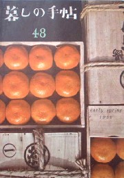 暮しの手帖第一期48号。ミカンとミカン箱の写真が表紙に使われています。 「ブロツクの棚」(ブロックで作る棚のススメ・カラーで可愛い写真です)、「動く棚洗える棚」(布の棚の作り方・ススメ。なべぶたをいれるだけのものを推奨!こちらの写真も可愛い)、「ボンネルを着てみました-新しい生地2」(布の商品テスト)、「印刷してある通りの分量が入っていたか」(日用品のテスト)、「青いカラス」(お話・富本一枝、影絵・藤城清治)など。表紙;花森安治、装画;花森安治。 | ||