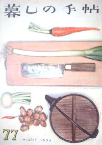 暮しの手帖第一期77号。まな板や野菜などを使って、こんな表紙を作ることのできた花森さんに感服。「男の靴をテストする」、「おもいきりふとい糸でおもいきりあらっぽいタッチで」(セータのつくり方)、「南京豆の首飾り」(南京豆ってのはビーズです。ビーズでつくる首飾りのすすめ)、「南の島の物語」富本一枝・藤城清治など。表紙;花森安冶、装画;花森安冶・幸田侑三。